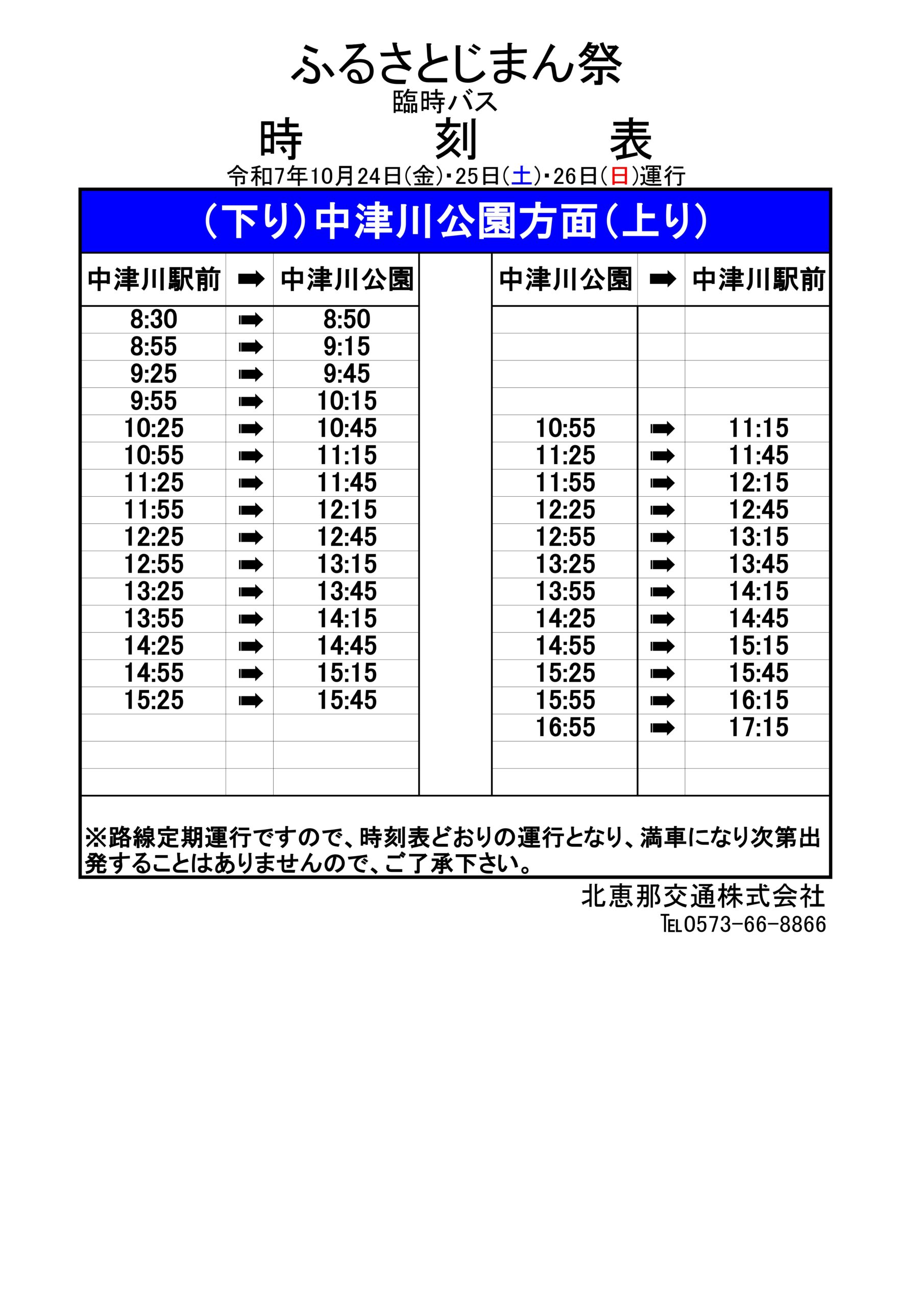東美濃ふれあいセンター会場と中津川駅間にご利用いただける直行バスを運行します。